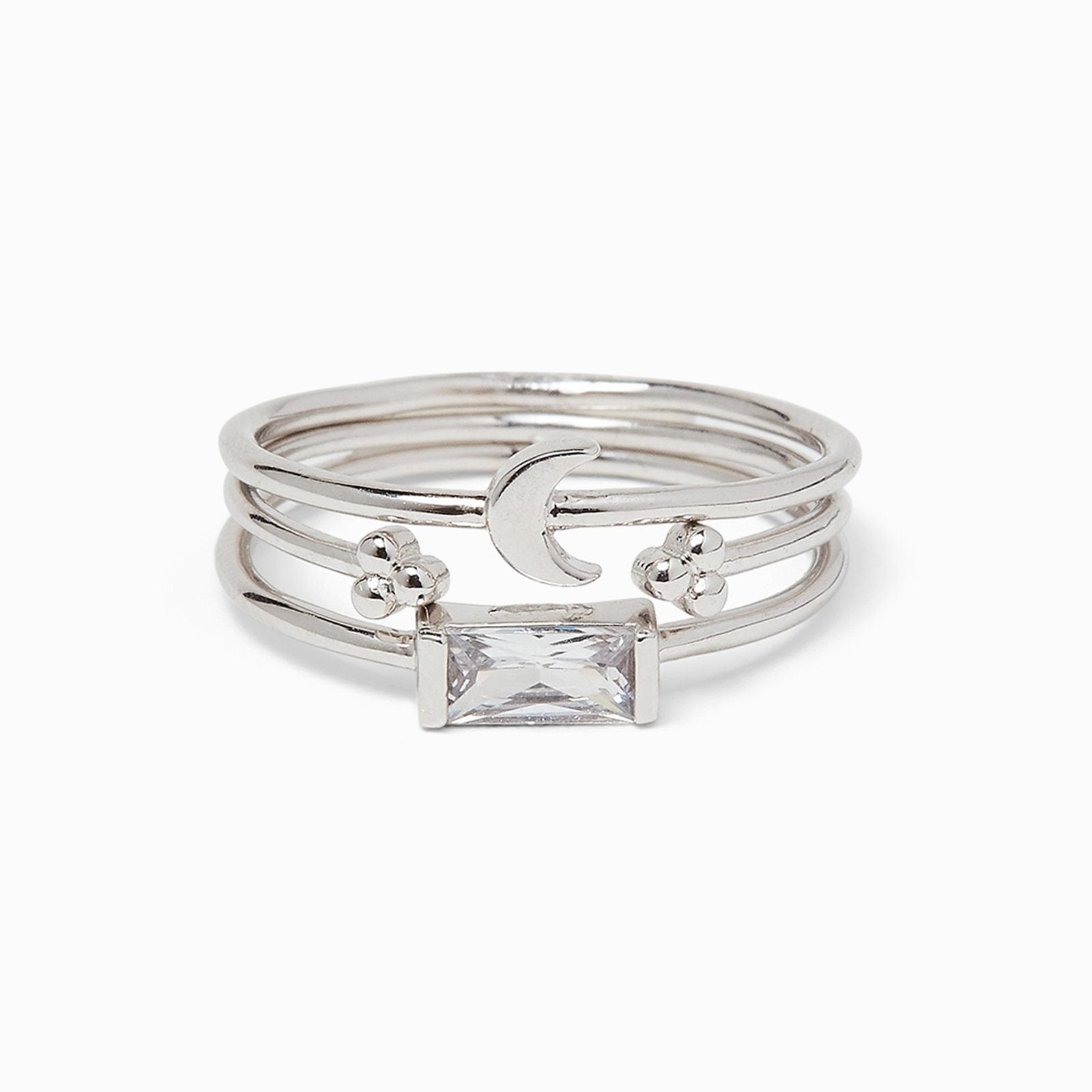 Our limited-edition Celestial Ring Stack is out of this world! This trio of stackable styles features a crescent moon shape and sparkling rhinestone accent for a shimmering look that’ll have you seeing stars.
