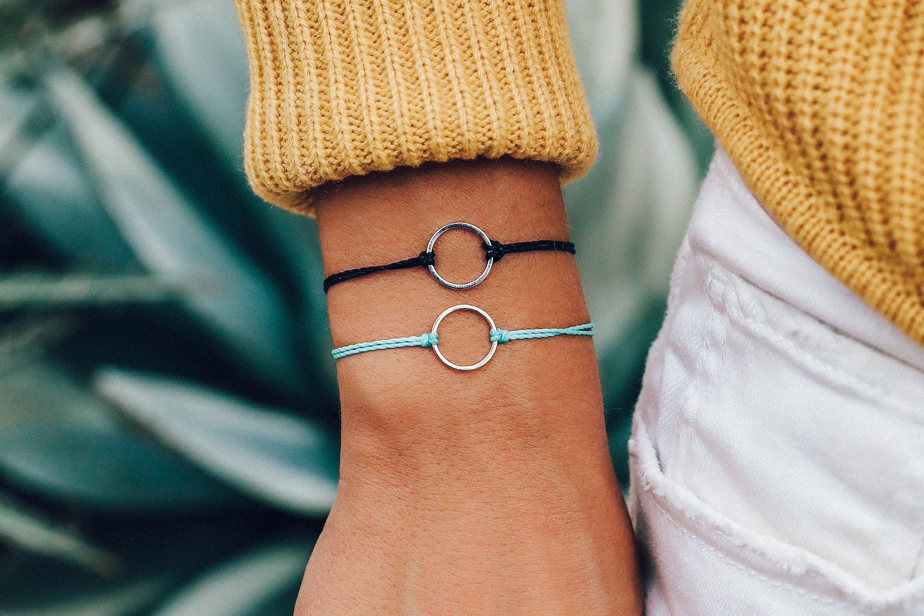 Our new Circle Charm Bracelet is the perfect style for stacking all year ‘round (pun intended!). Available in two string colors, this bracelet features a circle-shaped charm in a gold or silver finish, and looks perfect when paired with an armful of Originals.