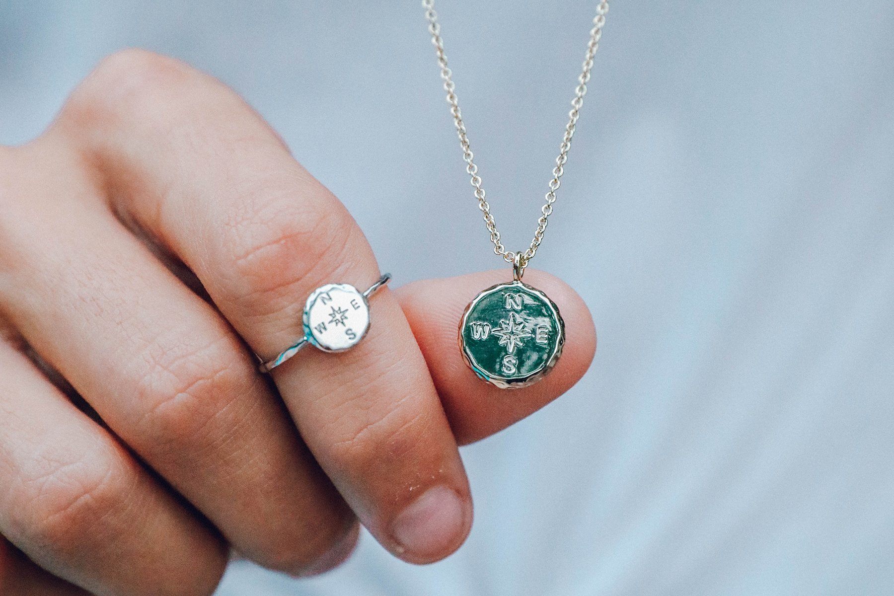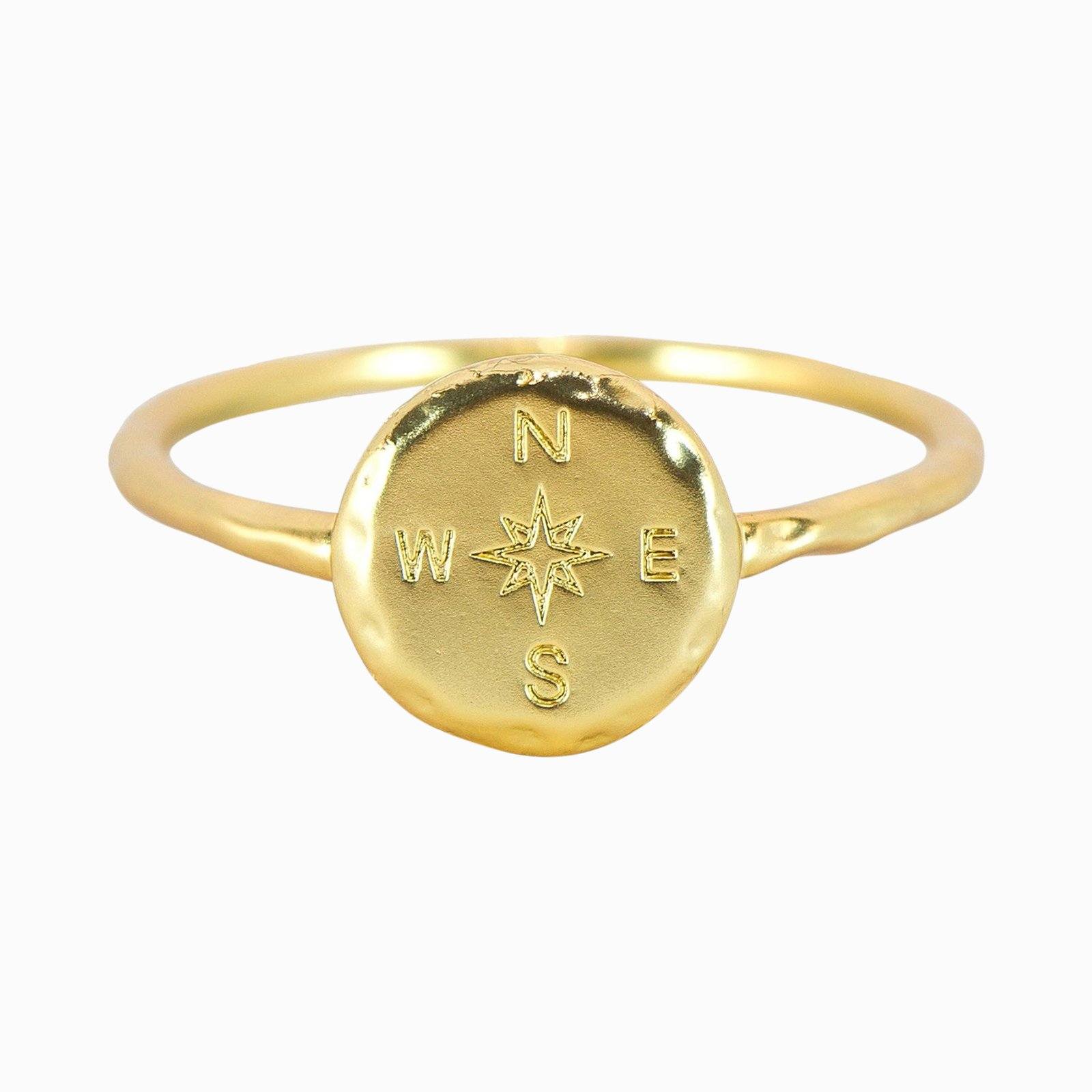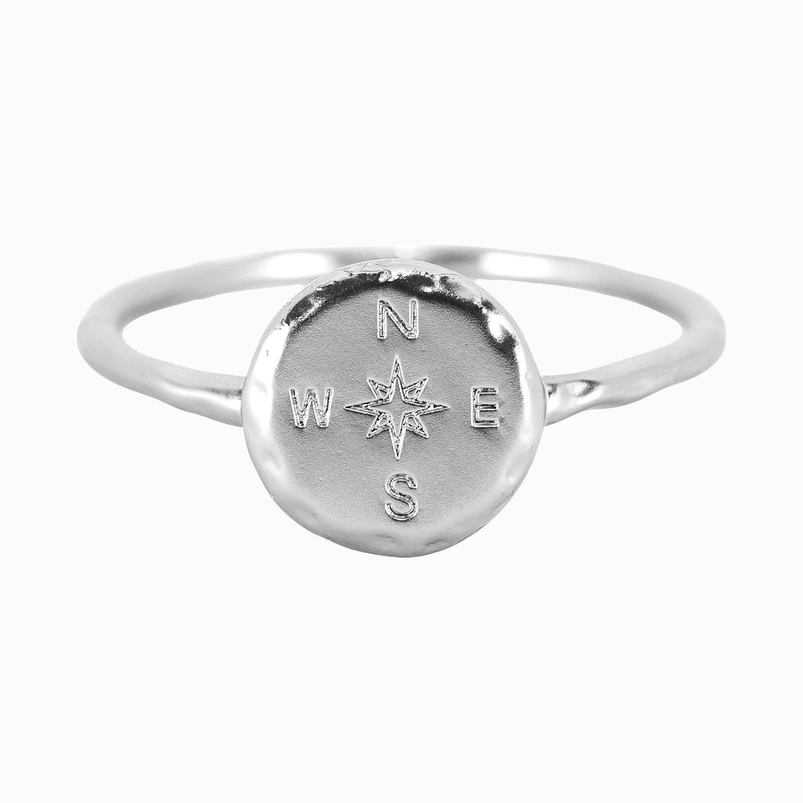 Go your own way with our adventure-ready Compass Ring. Available in two hammered-metal finishes, gold and silver, our Compass Ring will always point you in the right direction.