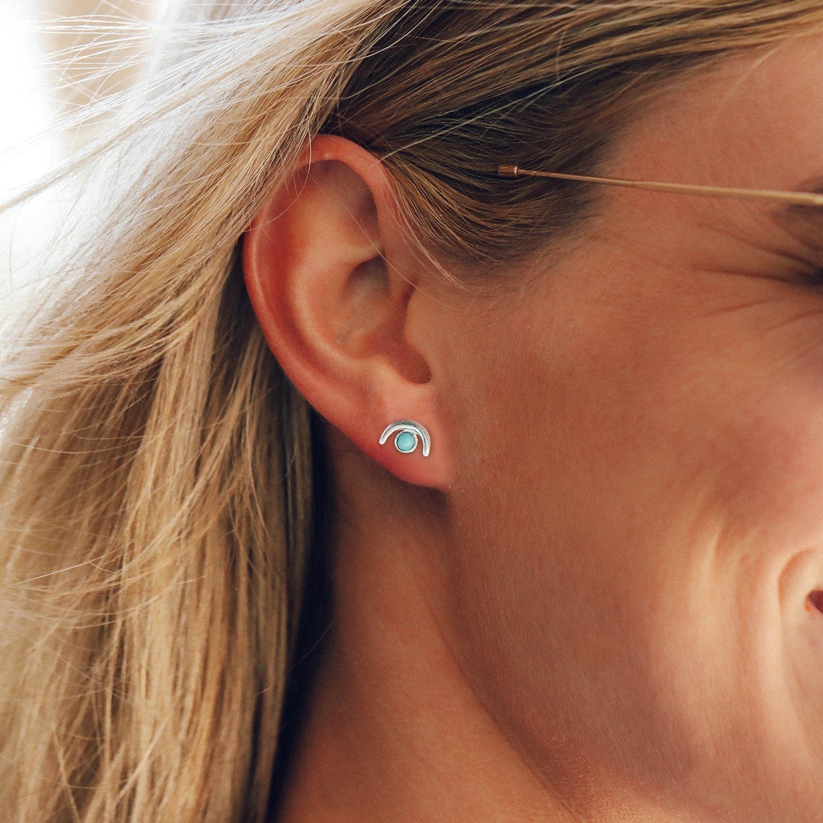 There’s no cuter combo than turquoise and silver, which is just one of the *many* reasons you’ll love our new Crescent Earrings. Featuring a sterling silver crescent arching over genuine turquoise stones, this set of summery studs is the perfect complement to any beach- or boho-inspired outfit.