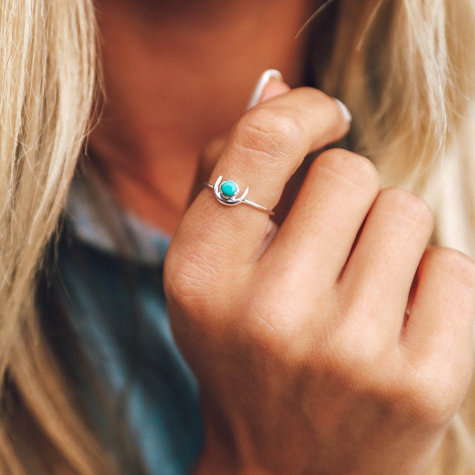 We’re over the moon for our new Crescent Ring. Crafted with a shiny silver finish, it features a crescent moon design atop a genuine turquoise stone (which is 100% unique, so no two look alike). Match it back to our Crescent Charm Bracelet and Earrings for a totally lunar look.