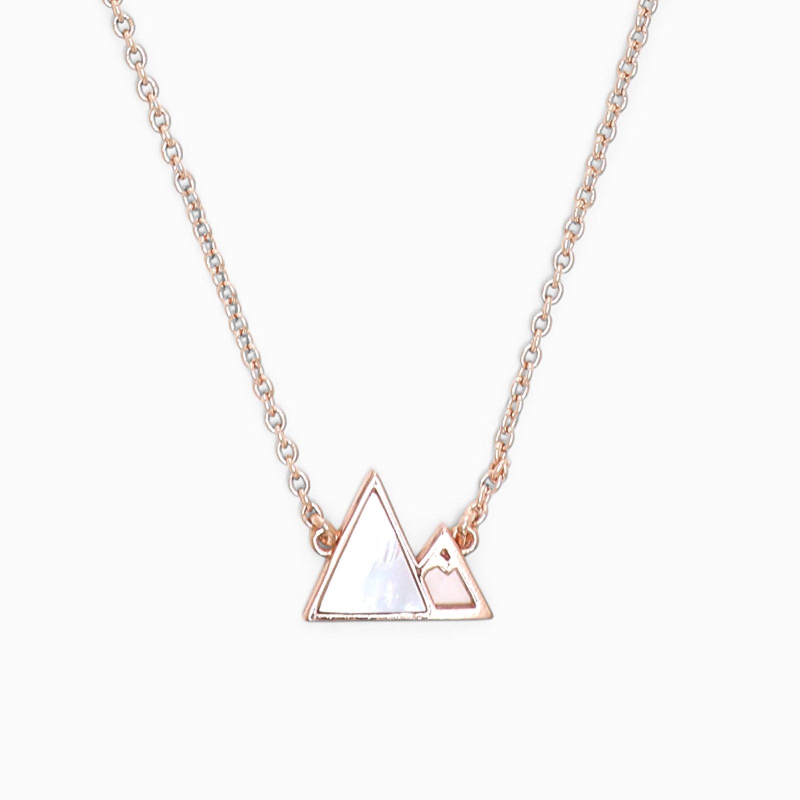 Our Gem Mountain Necklace is perfect for the outdoor explorer who loves to show off her feminine side. Set on a delicate silver or rose gold chain, the necklace features a double mountain charm (one that’s filled with turquoise or mother of pearl stone). This 100% gemstone boosts your creativity and lowers your stress. Plus, it’s totally unique—so no two look alike! Don't forget to pair it with our Gem Mountain Charm for the perfect look!