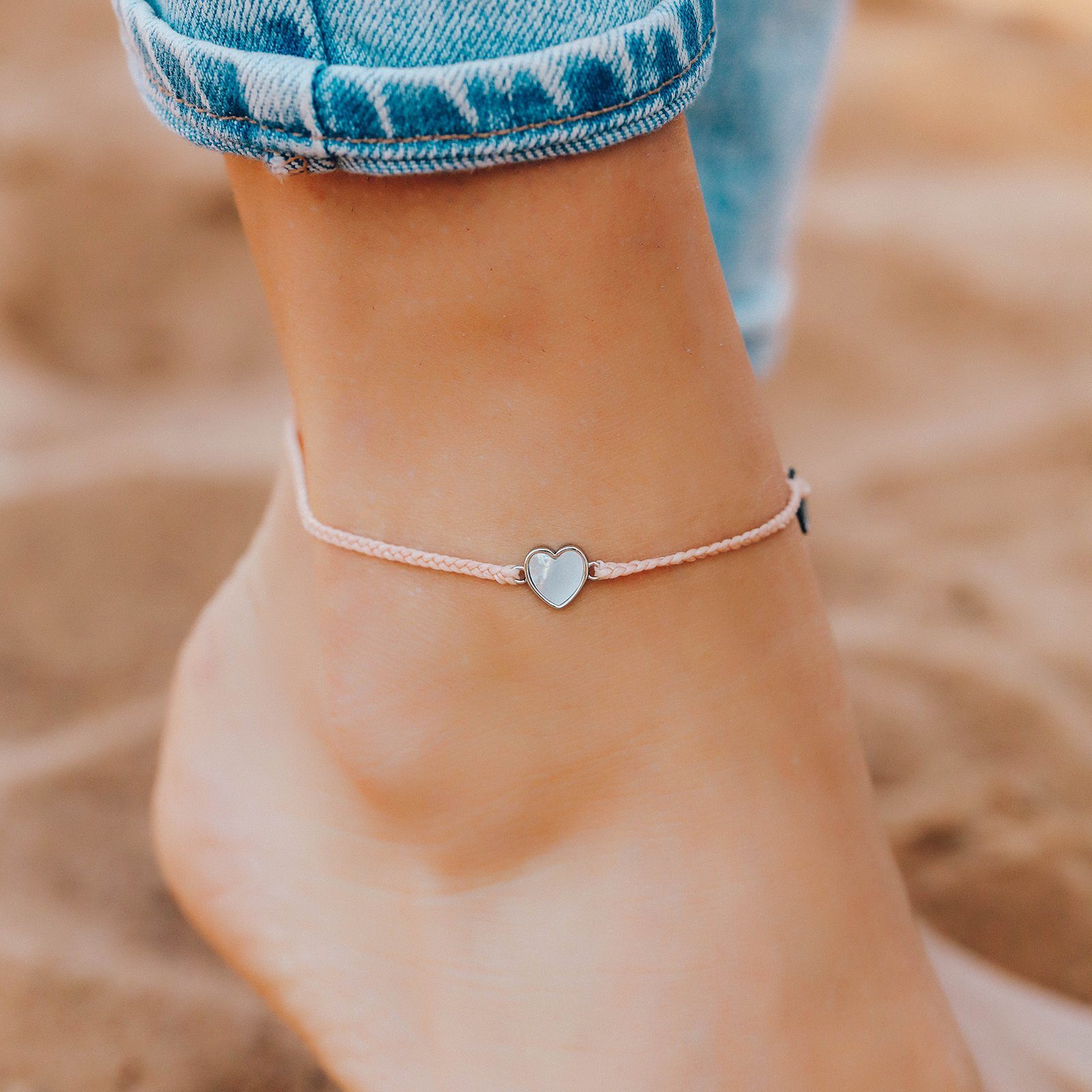Why wear your heart on your sleeve when you can wear it on your ankle instead?! Our Heart of Pearl Anklet is the sweetest style for summer, with an adorable heart charm filled with a 100% genuine Mother of Pearl stone. Each stone is unique, so no two look alike!