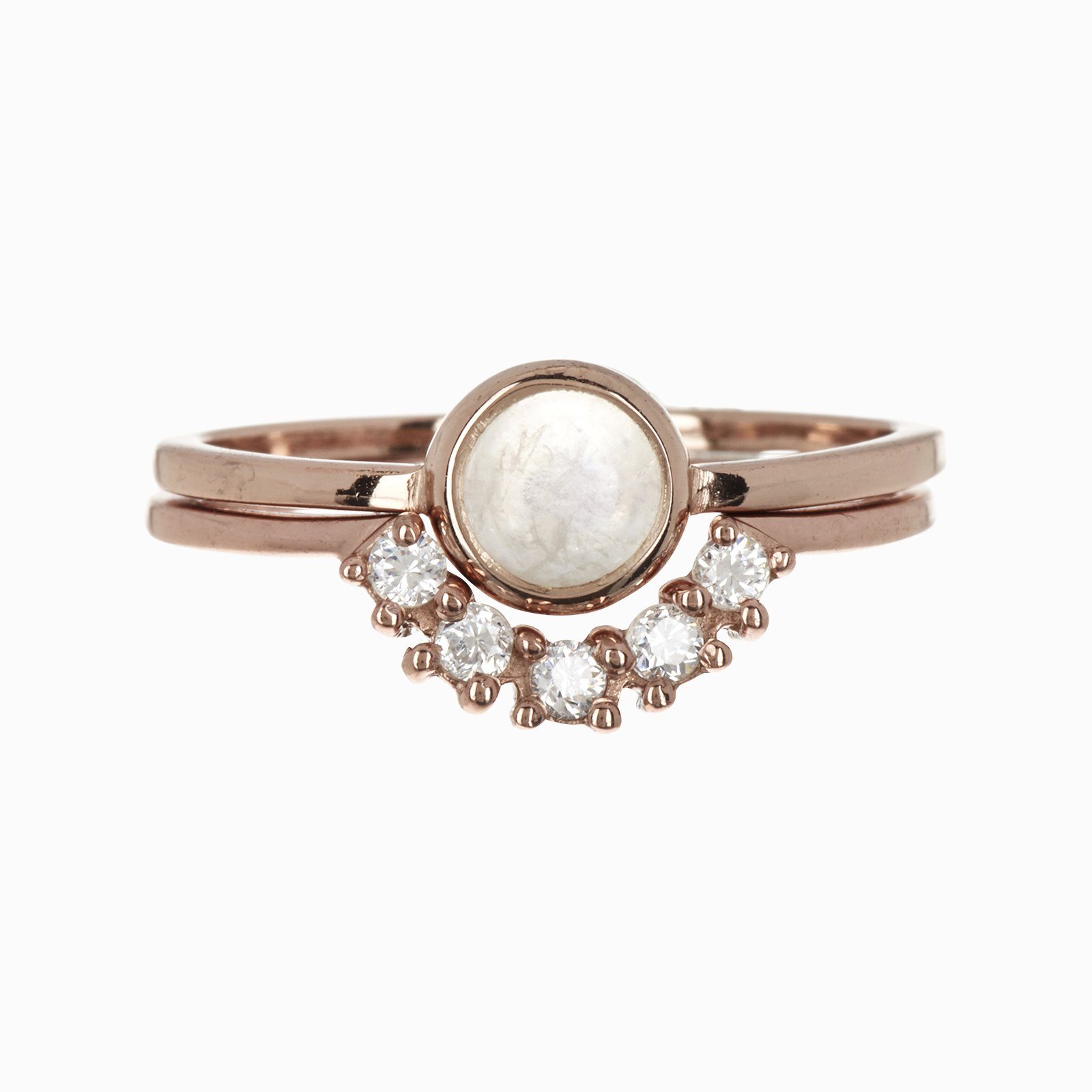 If dainty and delicate is your style, then we def. have the piece for you! Our Nesting Ring includes a duo of super-pretty styles and comes in two finishes - silver with a chalcedony stone or rose gold with a moonstone. One ring is made with a 100% genuine gemstone, and the other features itty bitty, sparkly stones.